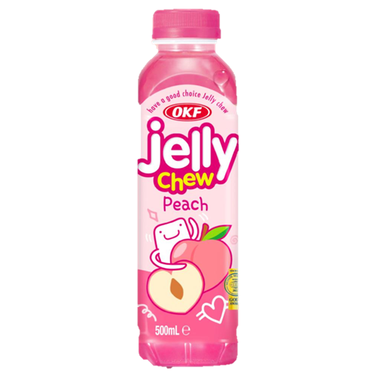 «Jelly Chew Peach» – это сокосодержащий напиток объемом 500 мл с инновационной текстурой желейных кусочков спелого персика. Содержит натуральный персиковый сок прямого отжима, обогащенного витаминами группы B и цинком для поддержки иммунитета. Уникальная особенность – плавающие в напитке мягкие жевательные кусочки персика с технологией «жидкий мармелад», которые создают эффект десерта в бутылке, сочетая удовольствие от жевания с освежающим вкусом.